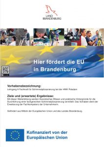 Die Weiterbildung wurde anteilig aus Mitteln der Europäischen Union und des Landes Brandenburg finanziert, wofür ich mich herzlich bedanke.